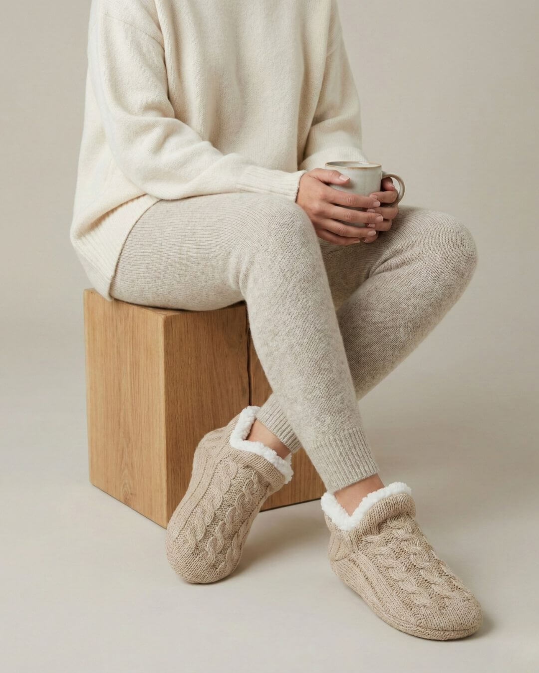 The ultimate hybrid between a cozy sock and a home slipper. Designed for the deepest winter months, this essential offers a sanctuary of warmth, featuring a classic knit exterior that exudes timeless charm.